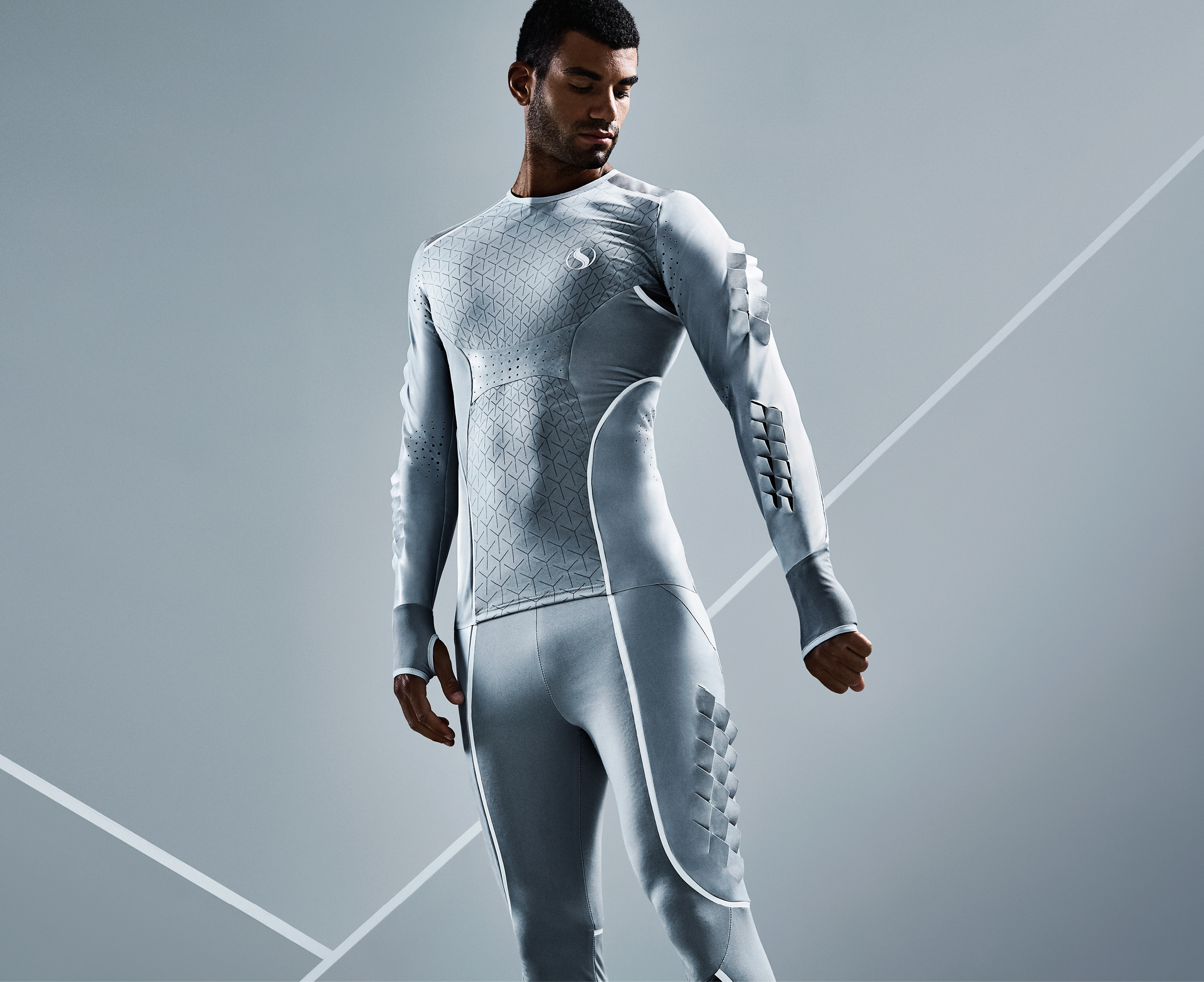 Mise à l’épreuve dans une vidéo de 90 secondes, la tenue SKYNFEEL™ APPAREL comporte des volets inspirés d’ailes de libellule sur les côtés du corps, faits à partir d’une mince couche de matériau SKYNFEEL™ et renforcés grâce à un motif en grille géométrique coupé au laser. Créés en tenant compte de la technique du sauteur, ces volets demeurent baissés lors de la course et s’ouvrent au moment du saut, lorsque l’athlète projette ses bras et redresse ses jambes.