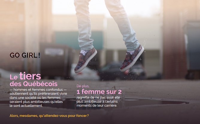 L’effet A dévoile un tout premier sondage qui porte sur la relation que les Québécoises entretiennent avec l’ambition. Les résultats sont sans équivoque : 73 % des femmes se disent ambitieuses comparativement à 78 % des hommes. Une question persiste : pourquoi, malgré l’ambition généralisée des femmes, ces dernières occupent-elles seulement 18 % des postes de haute direction et 37 % des postes de gestionnaires au Québec (contre 82 % et 63 % pour leurs collègues masculins*) ? Le sondage jette un regard nouveau sur cette réalité.