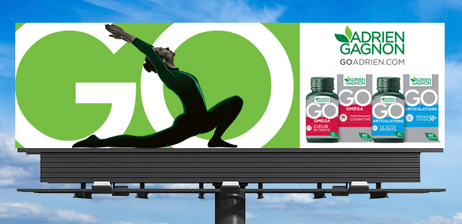 Jazz Marketing Communications a été mandaté par Santé Naturelle A.G. Ltée afin de développer l’image de marque de la gamme GO, la nouvelle gamme de produits Adrien Gagnon pour pour le consommateur qui veut profiter de la vie et repousser ses limites. La gamme comprend huit produits répartis en deux sous-gammes, soit GO Oméga et GO Articulations.