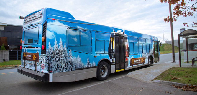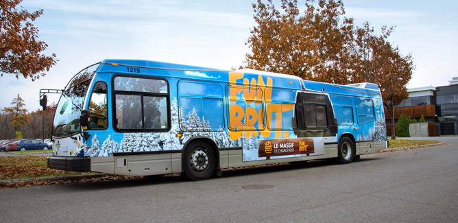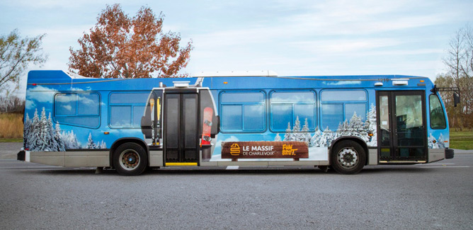 La station de ski a fait appel à l’agence Kabane pour la conception et la réalisation du maquillage complet d’un autobus du Réseau de transport de la Capitale (RTC).