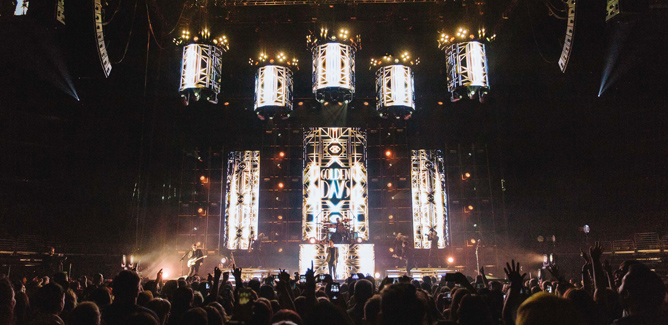 Cette fois-ci, le groupe originaire de Las Vegas a confié le design visuel complet de sa tournée américaine 2017, Death of a Bachelor, au studio québécois : la scénographie, le contenu vidéo, et l’éclairage (en collaboration avec Alex Specht).
