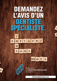 Annonceur : La Fédération des dentistes spécialistes du Québec (Dre Véronique Benhamou, Dr Christian Delnour, Dr Dany Morais)