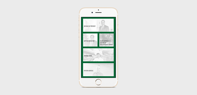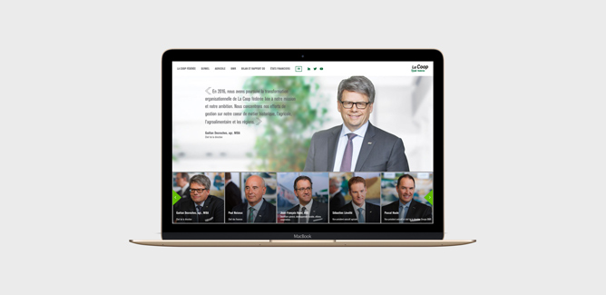 Voulant refléter son désir d’être actuelle et innovante, l’entreprise a voulu rendre l’information plus accessible aux utilisateurs avec cette nouvelle approche. L’agence Kryzalid a donc réalisé un microsite de type one pager entièrement adaptatif afin de présenter le contenu du rapport annuel. Tout en permettant l’interactivité, ce rapport en ligne illustre l’importance du développement durable pour La Coop fédérée.