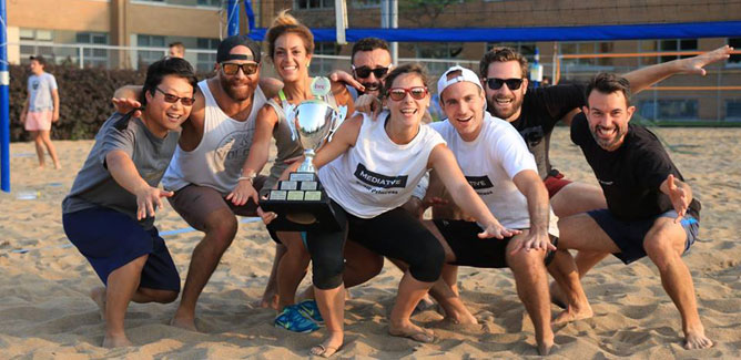 C’est sous le soleil que se sont affrontées les 28 équipes — 20 de niveau récréatif et 8 de niveau compétitif — sur les sept terrains extérieurs dans Ahuntsic. En finale de la catégorie compétitive, Touché! a remporté sur Havas Montréal. Dans la catégorie récréative, c’est Mediative qui a remporté la victoire sur District M. Et c’est pour leur camaraderie et leur énergie contagieuse que Crucial Interactive a reçu le prix du meilleur esprit d’équipe.