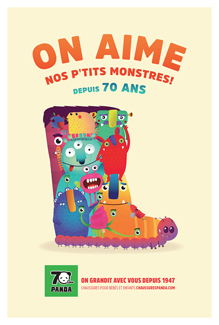 Sous la thématique On aime nos p’tits monstres !, la campagne ludique et colorée met en scène des chaussures habitées par de joyeuses créatures. Cet univers fantaisiste attirera à coup sûr les enfants tout en parlant aux parents.
