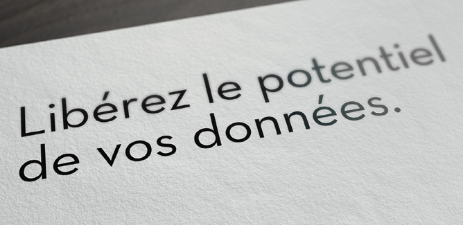 Un important travail de naming a d’abord été effectué. Le nom « Intégrale » a été conservé, mais sous une forme bilingue et distinctive, soulignant le « t » (pour technologie) et escamotant les « e » ainsi que l’accent aigu. Ensuite, le logo a été modernisé pour illustrer le rôle central d’Intgral dans la réussite de ses clients, avec un cercle ouvert, évoquant aussi la cible et l’engagement. La signature d’entreprise, « Libérez le potentiel de vos données », vient appuyer ce logo.