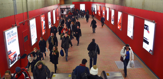 De type station domination, la campagne présentant les nombreuses caractéristiques et avancées technologiques du véhicule utilitaire sport est actuellement déployée dans les stations clés avoisinant le Palais des congrès.