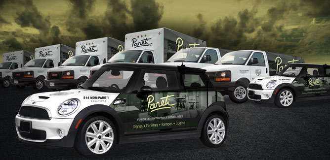 Le mandat de l’agence était de concevoir l’identité globale de l’entreprise allant du nom, de l’image de marque, de la papeterie, du site Web, des enseignes extérieures jusqu’à l’habillage de la flotte de véhicules.